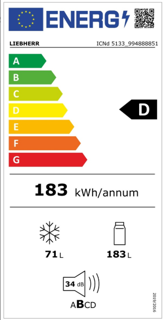 Godišnja potrošnja energije 183 kWh/godišnje