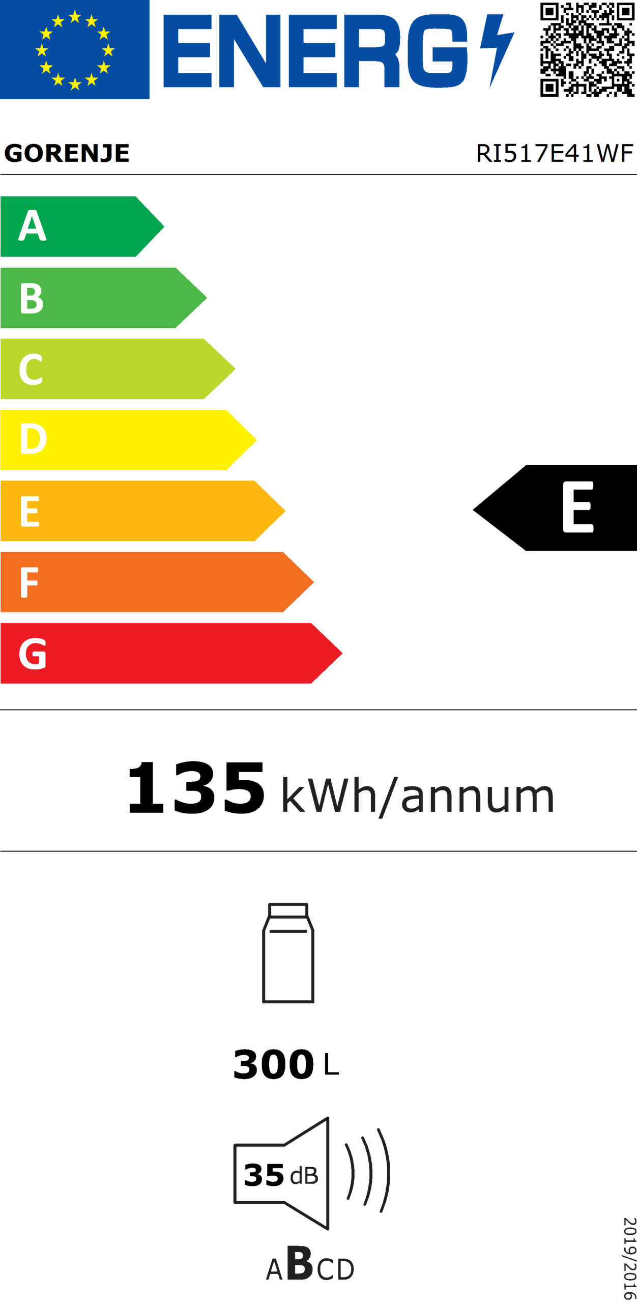 Procijenjena godišnja potrošnja električne energije 135 kWh